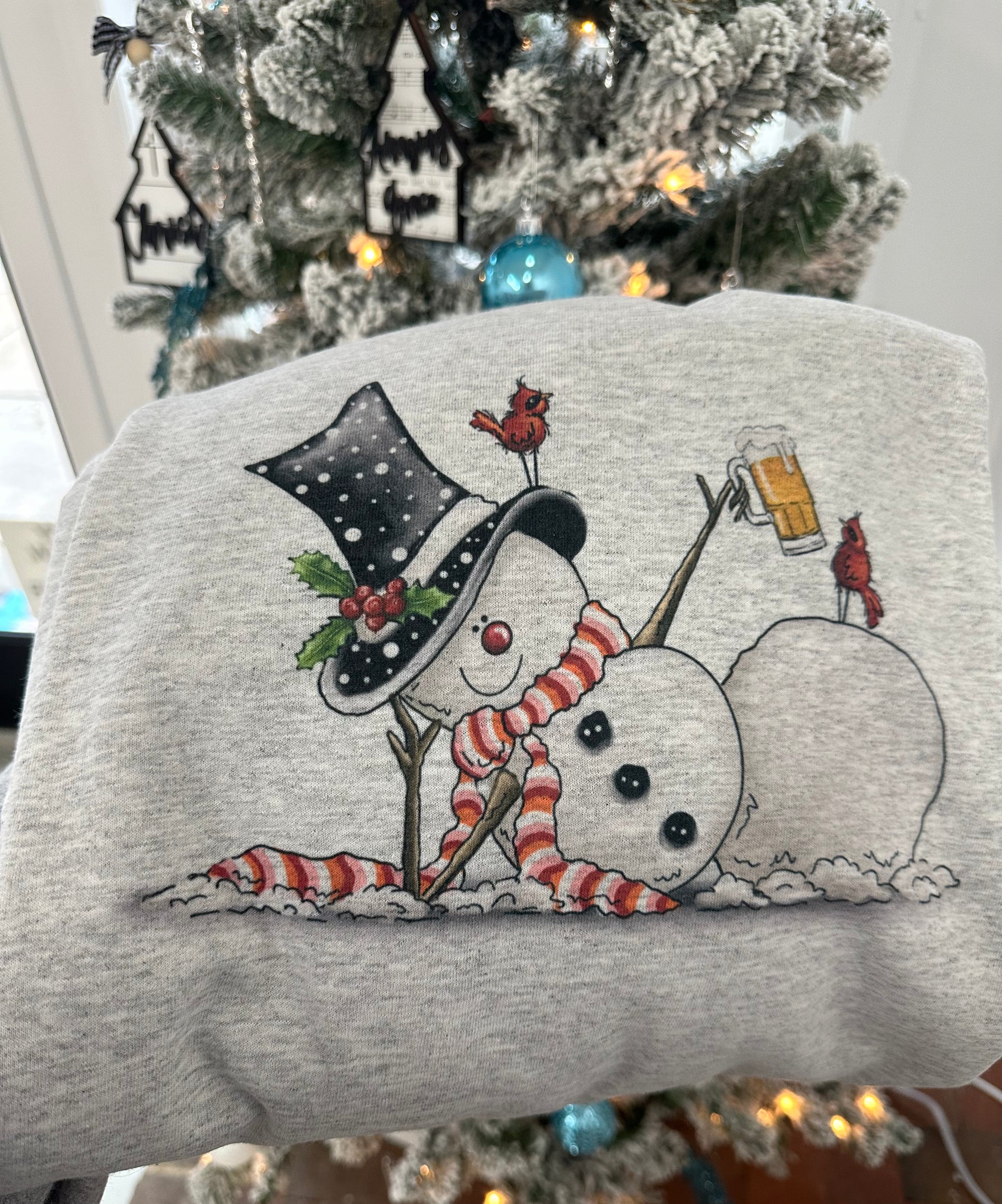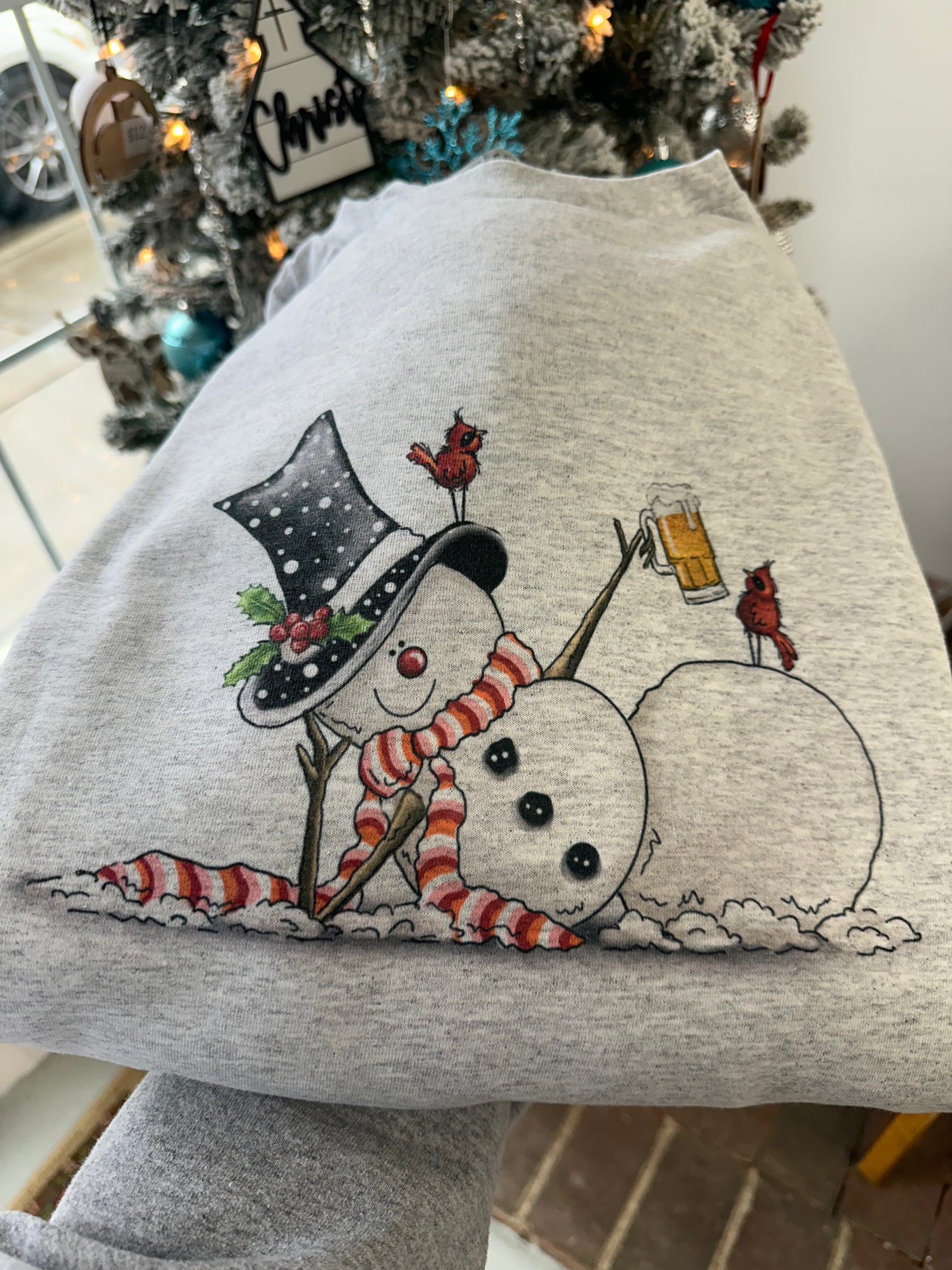Snowman having a beer Crewneck Sweatshirt