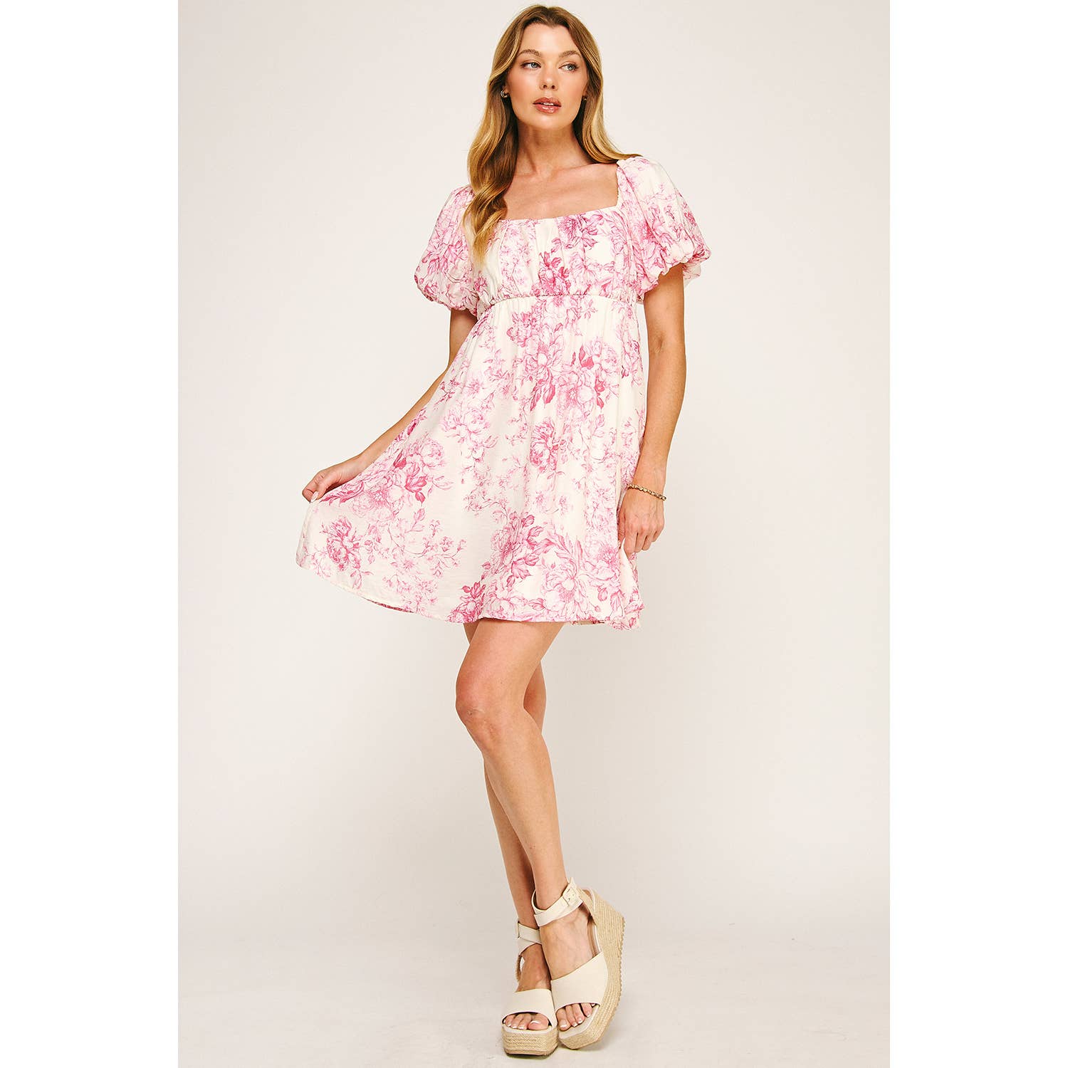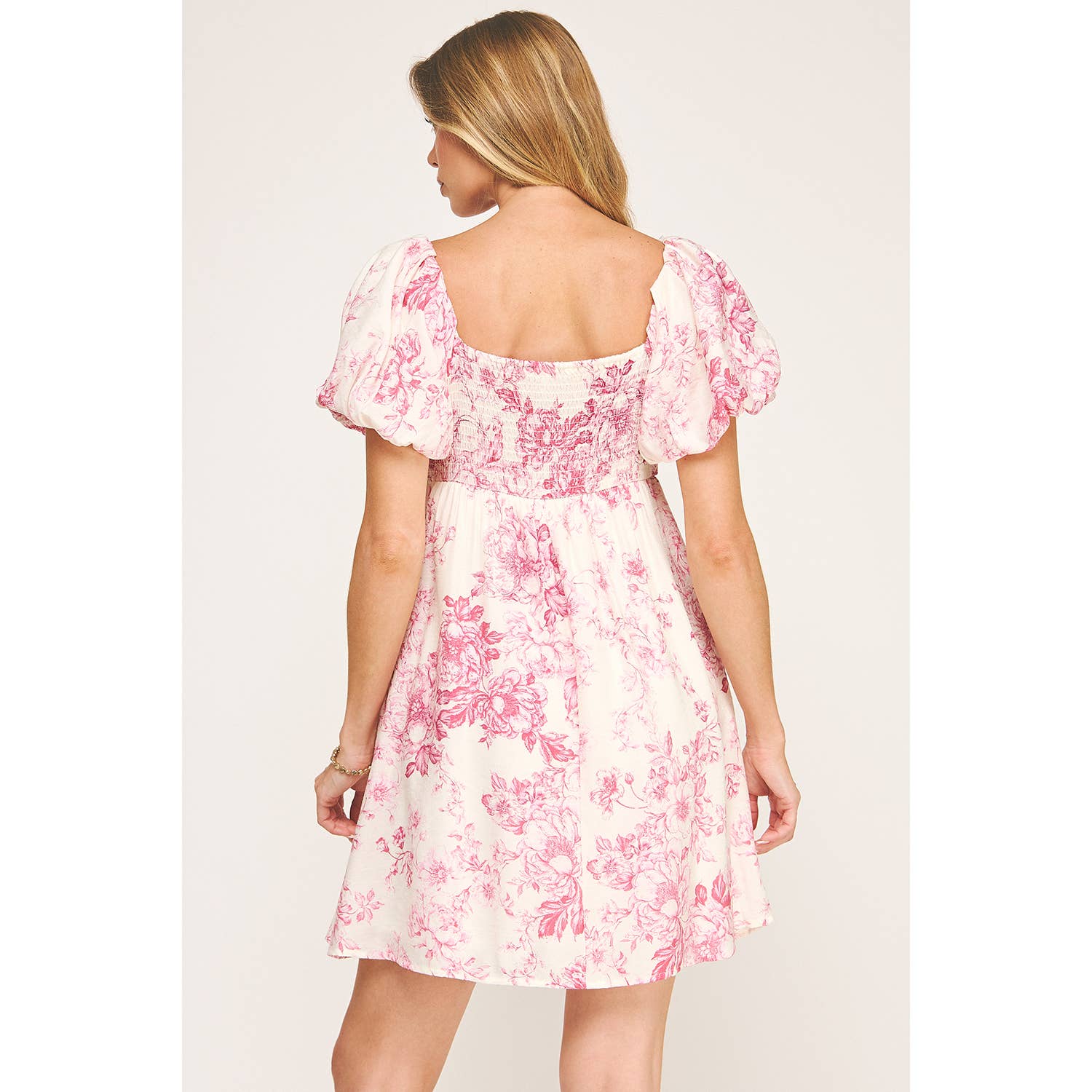 Say hello to your new favorite day dress. This darling fit & flare mini is full of charm with its bubbly puff sleeves and twirl-worthy silhouette. Made from a premium Midori woven fabric, it features a vintage-inspired floral print that feels straight out of a designer lookbook. Soft, airy, and undeniably cute - it's the kind of piece that turns heads and sparks compliments wherever you go.