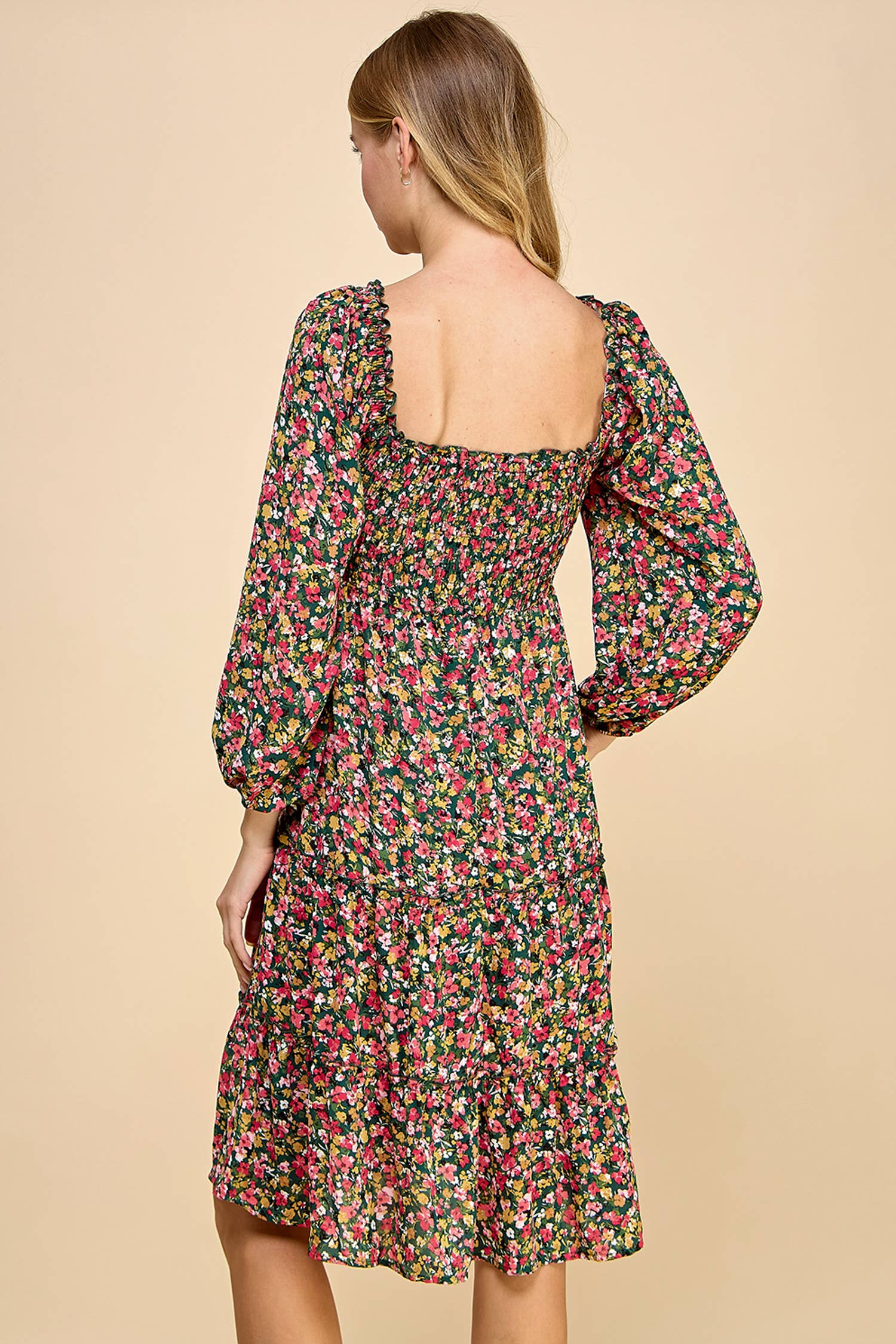 Boho Chic at Its Best: Tiered Dress with Smocking & Long Sleeves